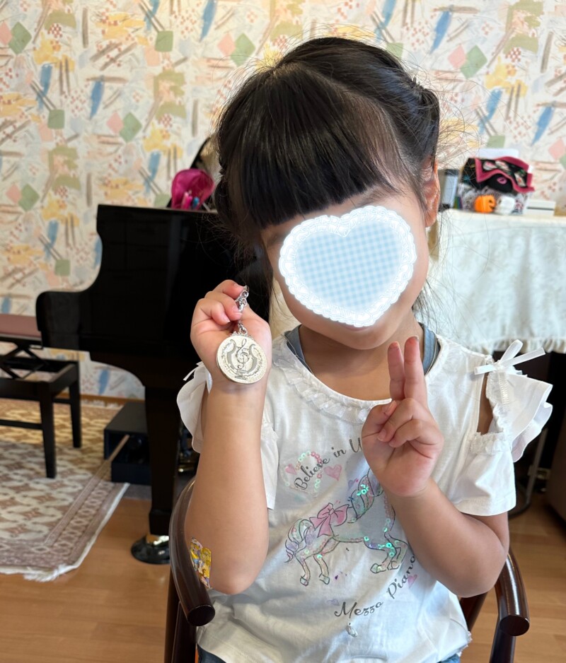 小3のAくん、2オクターブスケールとカデンツ・アルペジオ5つの調で合格して、銅メダルをゲット![]()