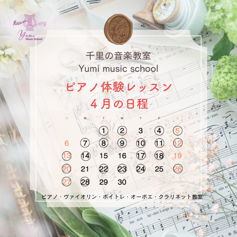 4月の体験レッスン日のお知らせです。